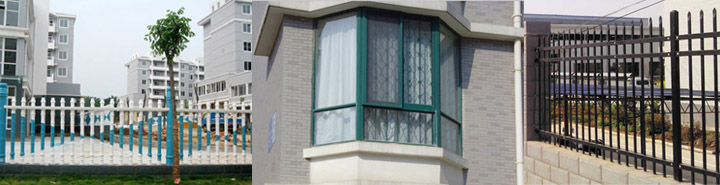 静电喷塑、高档氟碳漆锌钢护栏、楼梯扶手、阳台护栏、PVC、不锈钢护栏、防护网、铁艺、欧式大门、铝艺大门、铝艺护栏